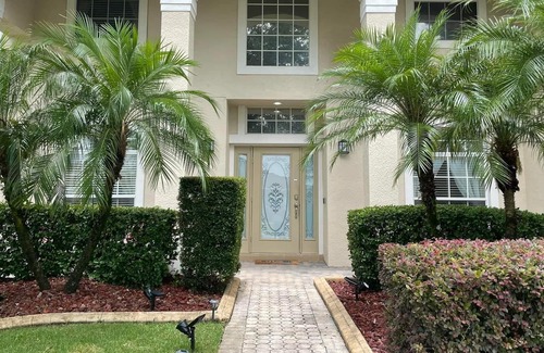 This home is a 3 bed 3 bath home with two common area couches that fold into queen beds or comfortable couches (one master bedroom, one additional bedroom upstairs and one private bedroom downstairs, 4000 sq feet, located right on a golf course of Eagle Dunes, cherry cabinets, tile, marble kitchen, heated pool, lake view as we'll. 4000 sq feet total. The home affords 3 private bedrooms, a 4th private bedroom upon request. Cleaning service is bi weekly. Pool is solar heated. 62-68 degrees during the winter and warmer during the summer depending on the outside temperature and sun visibility. One box of paper towels and toilet paper provided for a nominal charge. Beautiful for family's. Oversized pool. Near to the beach, shops, Disney, sea world, universal, major grocery and other shopping, tennis, etc. in the master bathroom the home has a jacuzzi tub, California king bed, and queen beds and decorum throughout the home. Extra large kitchen and dual sinks for everyone. 3-5 sets of Outlet Malls nearby, 3-5 shopping malls within a 20 mile radius. Long term rentals lasting 3 months or more can be considered for a discount. Please ask regarding this discount as long term is always more inexpensive! A smaller stay of less than 5 days is not a issue, please inquire!