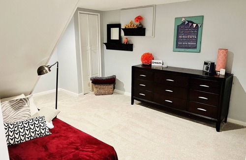 This home is large, with 4 bedrooms upstairs, and 2 bedrooms in the newly remodeled basement. The owners live in the house, and get the house professionally cleaned from top to bottom, and ready for their weekend and holiday guests. It sleeps 14 comfortably with 3 king-size beds and 8 twin-size beds. Enjoy the outdoors with 4 separate seating areas, including a fire pit, outdoor dining table, a 2nd floor balcony off the master suite, and a gazebo by the creek. Have fun playing on the pool table, ping pong table, and shuffleboard table.