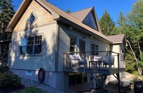 This four bedroom, three and a half bath beauty was recently built with an authentic Maine vibe and comfort in mind. Two levels of "shiplapped" charm include an open living area with vaulted ceiling and lots of windows~an invitation to natural light and views of the beautiful secluded wood setting.
