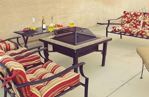 Newly renovated, single story open floor plan with wood and stone floors, recess lighting throughout, plantation shutters and rustic Southwest decor. Sleeps 6.