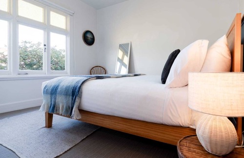 As you step into this cosy home you're welcomed by a thoughtful layout, with two inviting bedrooms on either side. One houses a queen bed while the other features a snug double bed, both offering plenty of storage and charming decor touches.