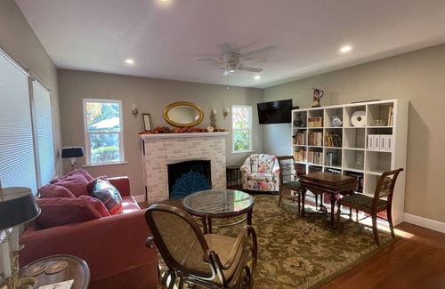 Cottage setting with large yard and garden. Four minute walk to downtown restaurants, shopping and wine tasting. Fully remodeled, well appointed kitchen with wood burning stove and large dining table. Charming living room with plenty of seating, fireplace, TV, WiFi sofa sleeper and game table. Adorable sunroom for relaxing with morning coffee or quiet, private reading area. Outside eating area with BBQ grill.