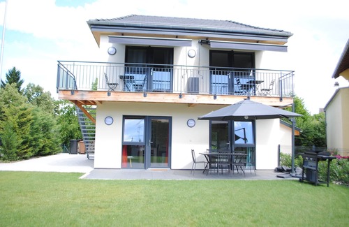 Balcony with a small table and two chairs. The cottage also has a garden on the ground floor where you can enjoy the barbecue.