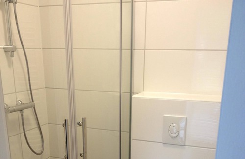 The apartment consists of a living room, a shower room and a fully equipped kitchen with dishwasher on the ground floor and a bedroom and a full bath with bathtub upstairs. The basement also has a washing machine and a pool table. In addition, there is a seating area in front of the house, which is suitable for sunbathing, barbecues and lingering.