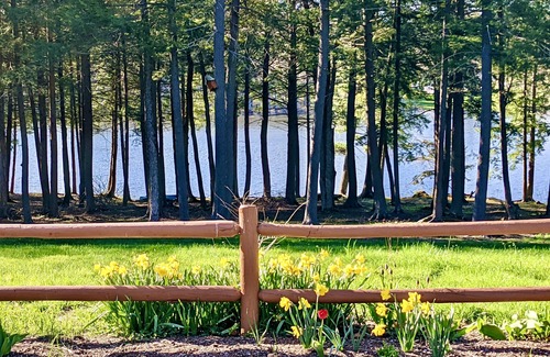 Quiet & private property with limited view of any neighbors, plenty of room for yard games, sitting by one of the 2 fire pits(on deck or in yard), or simply enjoying coffee on the large rear deck facing the water. 3 kayaks & 2 canoes here for miles of exploring, including gorgeous Pleasant Pond. Wildlife galore, including bald eagles and loons.