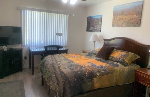 Guest house is your amazing getaway for as long as you want it. Bedroom 1 has a Queen size Bed, TV, desk and computer chair, Relaxing reading chair, Refrigerator/Freezer, coffee maker, microwave and private 1.75 bathroom. Bedroom 2 has a Queen size Bed, Dresser, TV, Desk with Computer Chair and Dinning Table w 4 chairs. Watch Trains circle the loop on Youtube from the live loop camera. Then physically view that same train as it passes by your bnb rooms as it comes by on Main 1, Tunnel 10 track, or Main 2 bypass track.