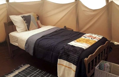 This handcrafted 18-foot stick tipi offers a serene escape in the Bighorns, with two twin beds and heating. It's steps from creek access and the Wagon Box Restaurant & Pub, offering craft cocktails, local brews, live music, and American cuisine.