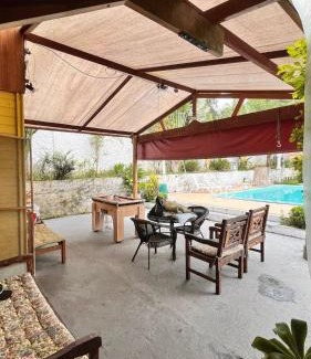 Food & DrinkTea/Coffee makerBathroomToilet, ShowerMedia & TechnologyTV, Radio, Flat-screen TVOutdoorsOutdoor furniture, Balcony, Outdoor dining area, Patio, Private pool, BarbecueKitchenMicrowave, Stovetop, Refrigerator, Kitchen, Dining table, Wine glasses, Oven, KitchenwareLiving AreaSofa, Sitting area, Dining areaGeneralTile/Marble floor, Trash cansViewView, Garden view, Pool view, Mountain viewBedroomWardrobe or closetAccessibilityEntire unit wheelchair accessible, Entire unit located on ground floorBuilding CharacteristicsDetachedRoom AmenitiesDrying rack for clothing, Socket near the bed, Non-feather pillow |