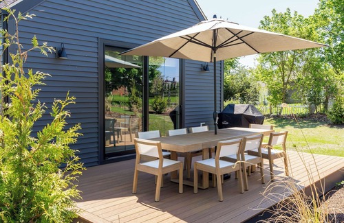 Nestled off the road in a secure private area, this stunning home combines the tranquility of its surroundings with the convenience of being just a short 5 minute drive to pristine beaches , a 5 minute drive to the charming town of Bristol and 20 minute drive to downtown Newport with its famous marina’s, restaurants and mansions . This brand new luxury vacation getaway is located in Portsmouth, on scenic Aquidneck Island . Beautifully designed - there are two spacious homes- side by side - which can be rented either together or separately. Each home sleeps 7 with 3 bedrooms and 2.5 baths . Every detail has been carefully curated , featuring high end trimmings, plush linens and towels, and West Elm furnishings throughout. The open concept layout boasts tall ceilings, abundant natural light, and a sense of spaciousness that makes the property truly special. Enjoy the comforts of home with a fully equipped kitchen, spa like outside shower, electric vehicle charging included and a large garage. Step outside to a cozy, private patio, perfect for relaxing or entertaining, quaint lighting, and a grill to enjoy your evenings under the stars. This vacation home provides both the luxury and serenity you seek. Bring the whole family and create unforgettable memories in this exquisite vacation rental!