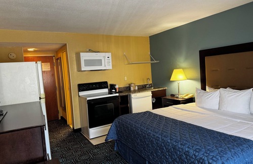 Enjoy a relaxing stay in the Handicapped Non-Smoking Double Room at Regency Inn and Suites. Perfect for solo travelers or couples, this room features a king-sized bed, flat-screen TV, high-speed Wi-Fi, and a work desk. Start your day with a Hot Continental Breakfast served daily near the lobby. The private bathroom includes complimentary toiletries and fresh towels. Conveniently located near local attractions, book now for a comfortable stay!