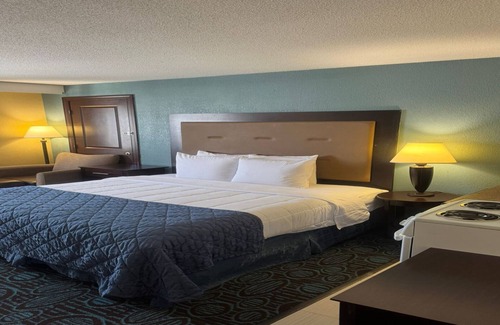 Enjoy a comfortable stay in the Handicapped Non-Smoking King Bed with Kitchen at Regency Inn & Suites. Perfect for solo travelers or couples, the room features a king-sized bed, flat-screen TV, high-speed Wi-Fi, and a work desk. Enjoy a daily Hot Continental Breakfast served near the lobby. The private bathroom includes complimentary toiletries and fresh towels. Conveniently located near local attractions, book now for a relaxing and accessible experience!