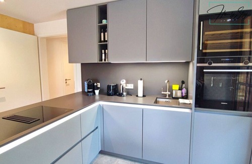 Enjoy your holiday in this stylish holiday flat that combines modern elegance with traditional charm. The bright, spacious living room offers you a breathtaking view of the surrounding mountains and access to a cosy balcony and a large sun terrace. Relax on the large corner sofa or enjoy meals together at the chic dining table.