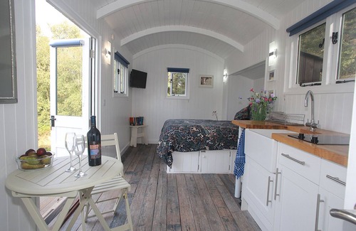 Escape the busyness of life and relax and recharge and stargaze in a private Stunning, spacious, clean, en-suite shepherd hut and jacuzzi hot tub.