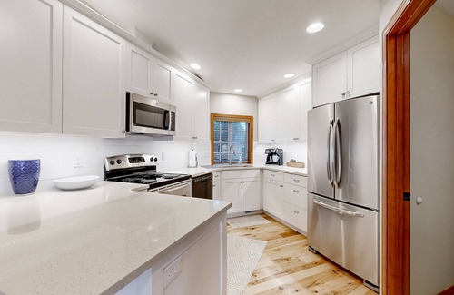 Inside, this 1,225 square feet townhouse boasts a vaulted ceiling and comfortable, open spaces to make everyone in your party feel right at home. Prepare all your favorite dishes in the well-equipped, full kitchen complete with stainless steel appliances and counter seating, and then dine indoors at the adjacent table or gather out on the patio for the perfect alfresco experience with the aid of your very own gas grill.