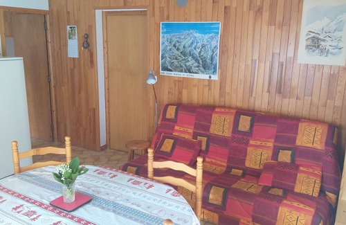 The apartment, of about 40 m², is located on the ground floor of the chalet and also includes a terrace and a closed garage.