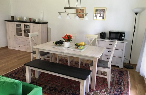 This includes a large garden with a picnic table where you can have a barbecue. Also a trampoline, Tischtennisplatte, Federball etc. available. Look forward to a holiday with or without pet in this beautiful non-smoking apartment.