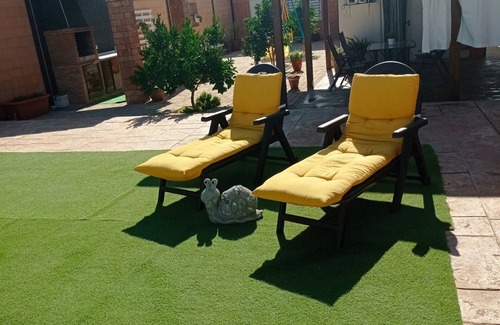The accommodation has a double bed and two single beds, a full bathroom with shower and a toilet outside in the pool area. There is a TV and dining area, with air conditioning and Wifi. The kitchen area is equipped with everything necessary for the stay (refrigerator, oven, microwave, ceramic hob ....) The outdoor area has a swimming pool, sun loungers, artificial garden, barbecue, and private parking for 3 cars.