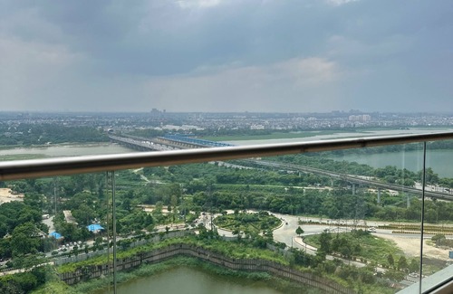 Beautiful River view apartment with a lavish balcony overlooking the city’s skyline and the gorgeous blue Yamuna river.