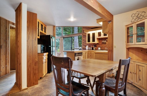 Rustic River Paradise is located on the banks of the Skykomish River, with soaring views of the mountains and river. Enjoy the sounds of the rushing water, or watch eagles and osprey fly from the large wraparound deck! Floor-to-ceiling windows bring in plentiful light and broad views up and down the river while you prepare a delicious dinner in the open kitchen or warm your toes by the woodstove. (Search the full rental property name online to find out more.)