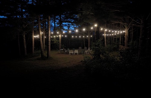 After a day of adventure, unwind around the cozy firepit tucked into the pine trees, sparkling with ambient string lights just steps from the water’s edge. Challenge your friends to a fun game of cornhole or simply relax and enjoy the river views. Fishing enthusiasts, you're in for a treat! The Wisconsin River here is rated A1 for musky fishing—bring your poles or hire a local guide for the catch of a lifetime!