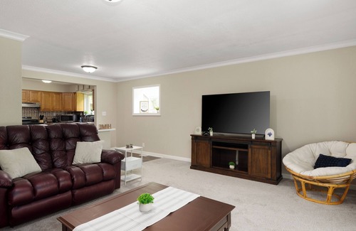 Your private riverside playground, kayak from the backyard, soak in the hot tub under the stars, battle it out in the garage game room, or grill by the fire pit. With room for 18 guests, two full kitchens, a basketball court, playground, and more, this is where unforgettable memories are made. Relax hard. Play harder.