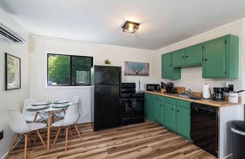 It offers a great designed cabin with Mountain views, Master’s King bed, second bedroom queen bed, a nice couch futon, home is fully remodeled book now!