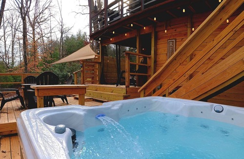 Romantic A-Frame Cabin with Hot Tub + Netflix is located in Lake Lure. Romantic A-Frame Cabin with Hot Tub + Netflix provides accommodation, featuring Air Conditioner, Balcony/Terrace, Fireplace/Heating, among other amenities. This Cabin features Air Conditioner, Balcony/Terrace, Fireplace/Heating, to make your stay a comfortable one.