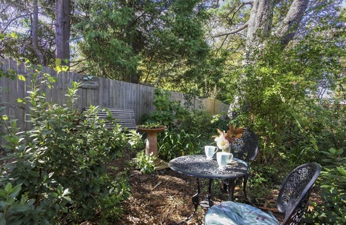 You have private access to the cottage from the front french doors, the large side deck or the french doors in the bedroom. Each access point is unique and provides a special aspect of the garden for you to relish. A perfect way to relax and restore the inner you. Falling asleep to a gently bubbling fountain is included!