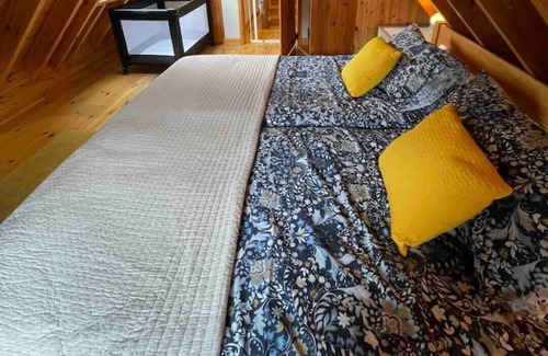 In the centre of the Lodge is a beautiful mezzanine wood landing which leads to a bedroom at each end of the property. Both bedrooms have king-size beds that can also be set up as twins if that works better for you, just let us know (please note, the beds cannot be moved apart when set up as singles).