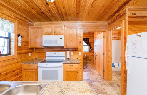 The Boars Nest cabin is quaint and relaxing for a couple or small family. This 4-person cabin is loaded with perks, including a private bedroom, one shower bath, a cozy and fully furnished kitchen, living/dining area, and a wonderful outdoor hot tub deck with a marvelous view. You will never want to leave once you spend the weekend in this cabin!