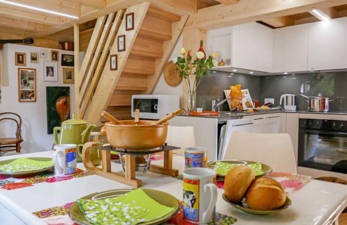 "Rustico Ginetta", 3-room house 60 m2 on 2 levels. Partly with sloping ceilings, fully renovated in 2018, comfortable and cosy furnishings: open living/dining room with open-hearth fireplace, satellite TV, flat screen, radio, CD-player and electric heating. Exit to the terrace. 1 double bedroom with 1 double bed (2 x 90 cm, length 200 cm). Open kitchen (oven, dishwasher, 4 ceramic glass hob hotplates, microwave, electric coffee machine, raclette grill, fondue Set (chinoise, cheese)). Shower/WC. Electric heating, wood heating. Upper floor: (steep stair) open gallery with 2 beds (80 cm, length 200 cm). Patio. Terrace furniture, barbecue, deck chairs (2). Beautiful view of the mountains and the forest. Facilities: washing machine, children's high chair, baby cot for up to 2 year olds (extra), hair dryer, logs (extra). Please note: suitable for families. Non-smoking house. Maximum 3 pets/ dogs allowed. Fire extinguisher. Two way road, real time 20 minutes. Instead of an enclosed bedroom, some sleeping areas are located in an open-plan area (gallery, alcove, etc.). NL-00003126