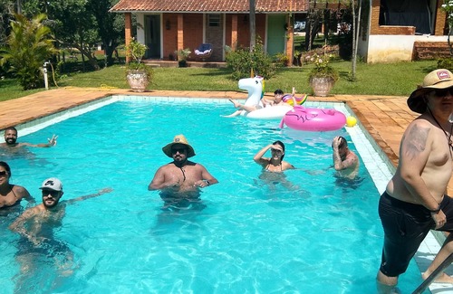 Main house, with room w / tv wing of the suites all lawn, swimming pool, mini soccer field, game room, large lake, playground, outdoor kitchen with all utensils, refrigerator, gas stove, barbecue grill plate, wood oven all garden space
