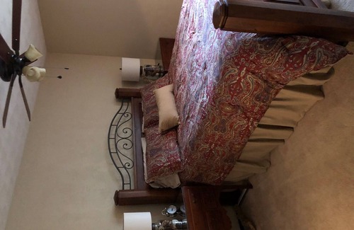 Shaded gazebo and bistro table along with Char-Broil 2 burner propane BBQ grill in back yard. After using grill please ensure propane is off, use wire brush to clean grill and once cooled replace cover. In season there are lots of flowers along with strawberries, peaches and mint for you pick and use. Garden has 8ft retaining wall with no guard rail. The garden is not a play area and children must be supervised at all times. Fortunately, McCoy park is just down the street. No cigarette smoking on property, I do not wish to pick up any butts. Even though it is not legal in our state, we are 420 friendly, just not inside.