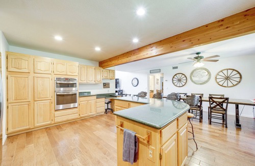 Gather friends and family and head to this breathtaking 5-bedroom, 4.5-bathroom vacation rental home in the “Heart of Arizona,” located just outside of Payson. This ideally-located mountain home serves as an invitation for a relaxing family-oriented getaway, with hiking trails and a nature walk right from the back door. After a day of exploration, spend time resting in the sauna, relaxing on the multi-level deck, or enjoying a delicious home-cooked meal and time spent with family.