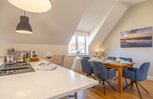 With Sea Haven Cottage being an upside-down property, you'll find a welcoming and generous living area on the first floor that seamlessly combines the dining room, sitting room and kitchen. The open layout creates a social space where you can gather with family and friends. Whether you're cooking up a delicious meal in the well-equipped kitchen, enjoying a hearty dinner at the dining table, or unwinding on the comfortable sofas in the sitting room, every moment spent here is sure to be enjoyable. For those seeking some downtime or entertainment, the adjacent snug comes equipped with a Nintendo Wii, Smart television and board games. Perfect as a breakout room for the children or simply finding a quiet spot to relax.