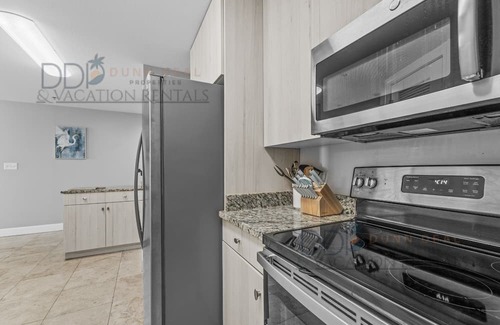 Relax with your morning coffee or evening cocktails on the private balcony as you take in the sights and sounds of the Gulf. Inside, you’ll find a fully equipped kitchen, modern appliances, and stylish coastal décor. The living and dining areas are designed for comfort, connection, and plenty of natural light.
