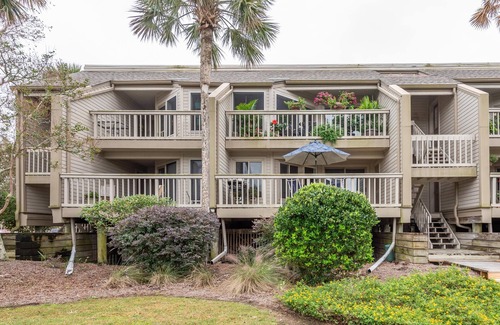 Our beautiful Villa has just been refreshed for the 2025 season! Overlooking the tennis courts, this immaculate two bed, two bath has a fresh open Low Country feel. The inviting granite in the kitchen to the beautiful hardwood floors throughout, pack your bags and leave your worries behind!