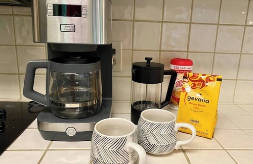 Start your day off with a hot cup of coffee from the coffee station. You’ll find a 12-cup drip coffee maker as well as a French press. Creamers, coffee, sugar, and tea bags are provided.