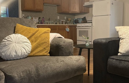 This cozy one bedroom sits in the middle of over 30 private acres just waiting to be explored. Bring the mountain bikes for some off-trail riding, cozy up on the sun-porch and watch wildlife from the sunroom or sit around the fire after a long day. The cottage is quaint yet spacious, with a well equipped kitchen, bath, and laundry area. Close to Knoebels, Geisinger Medical Center, Montour Preserve and a plethora of hiking and biking trails. 4WD/AWD is required for access during inclement weather and recommended all year round, as the gravel driveway is 0.5 miles up the mountain. In the event of severe weather/ice on driveway in winter months, reservation may be cancelled due to safety concerns. Likewise, guests have the option of making a real adventure of it and "hiking in", as a lower parking area exists.