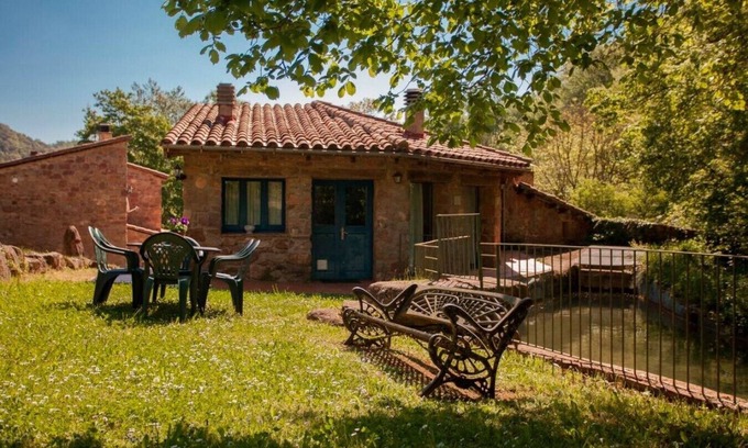Self catering Molí de Dalt for 4-6 people with heated communal pool is located in Riudaura. Self catering Molí de Dalt for 4-6 people with heated communal pool provides accommodation, featuring Pool, Fireplace/Heating, Kitchen, among other amenities. This Cottage features Pool, Fireplace/Heating, Kitchen, to make your stay a comfortable one.