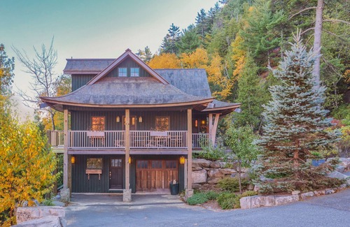 This extraordinary, shorefront, custom-designed home in the historic Hall Quarry area of Mount Desert Island, made with indigenous materials fits gracefully into the shoreline of Acadia National Park against which it abuts and Acadia Mountain on which it is perched below. With stunning views of Somes Sound from nearly every room, take in the parade of handsome cruising yachts and racing sailboats while relaxing by the fire or sitting on the expansive deck. This well-designed and light-filled home features open beams supported by mountain cedars and an open layout with a gourmet kitchen. With three floors of living space, this special home offers the utmost privacy without compromising space in which to gather and entertain. Guests to Acadia Lodge will surely enjoy the views from any one of many spots - the sunny deck facing the Sound, the north or south side porch, or the outdoor patio with a fire pit sheltered under a cliff. And when it's time to venture away from the house, follow the granite steps to a private dock with two moorings. National Park hiking trails can also be reached directly from this property and swimming from Echo Lake's beach, ledges or Ike's Point is just a few minutes away by car. All in all, with so much of the national park nearby and is within 10 to 20 minutes from the villages of Southwest Harbor and Bar Harbor, Acadia Lodge offers the peaceful benefits of the "quiet side" without giving up convenience to the Park or to the shopping and dining each village offers.