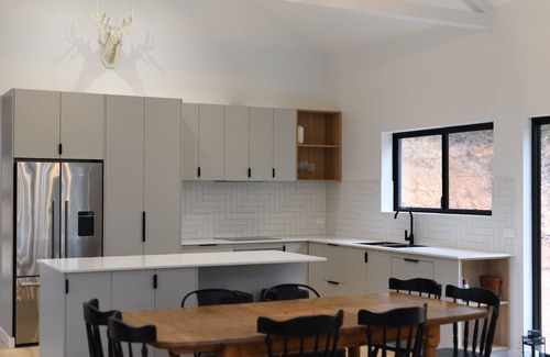 With its large open plan kitchen, dining room and living room, covered outdoor patio, four bedrooms and two bathrooms, Elvebredden Hytte can comfortably accommodate up to 8 guests. One king room with ensuite, one queen room, and two twin single rooms, including a charming European-style loft bedroom with gabled ceilings and enough space for junior guests to play or chill out, all with breathtaking views of the natural beauty that surround you. There’s an indoor wood fireplace for cozy evenings, brand new kitchen appliances to cook up a feast, pod coffee machine, BBQ, washing machine, dryer, reverse cycle A/C, TV, DVD player and discs, books, toys and board games to keep everyone entertained. Sip coffee while gazing out the picture windows, or a glass of local wine on the outdoor lounge.