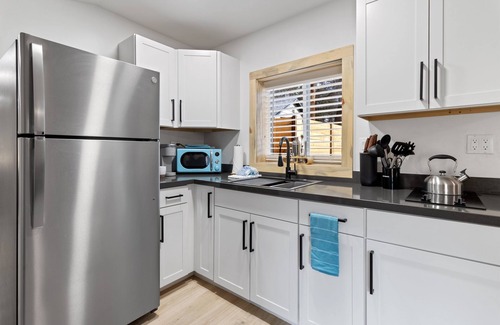 Tucked into a peaceful, creekside community, Shoreline Village welcomes you the moment you arrive. As you drive in, you’ll feel the world slow down—tall trees lining the road, and a cluster of cozy cabins, each with its own private spa and modern charm. Cabin 5 - located in the center of the village - greets you with modern design, a smart split floorplan perfect for traveling with friends, and all the thoughtful touches you need to unwind. Pets welcome with pet fee.