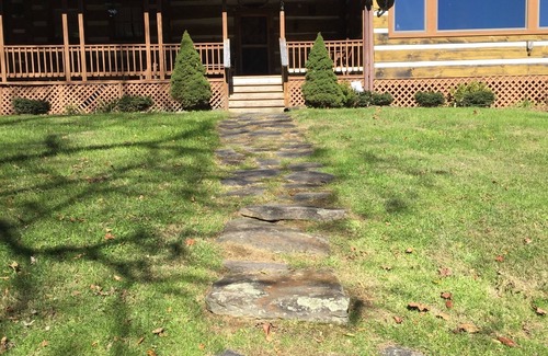 The mountain views and privacy this genuine log cabin offers are irresistible. From the quaint drive along a country road through the woods, you will often pass cattle before you are welcomed with the site of hand-made rocking chairs and hot tub on a full porch. Once inside, you will feel warm and cozy surrounded by 200 year old timber walls, comfortable furniture, and a gas-burning fireplace. The kitchen is large and very well-equipped for cooking, baking, and gathering together. The main floor master bedroom offers a luxurious king size bed, while a second bedroom offers a queen bed. Upstairs you’ll find a large bedroom with two twin beds and one queen bed, as well as an en suite bathroom with a beautiful slipper tub. While rustic in decor, this cabin offers all the modern amenities for those who still need connection: fast WI-FI, unlimited domestic phone service, and satellite TV. Approx 30 minutes (19mi) to Boone or Jefferson (22mi), and only 22 minutes to Mountain City, TN (11mi). Approx. One Hour (33 miles) to popular ski hills. There are three security cameras on the property, covering the front yard, back yard, and front door.