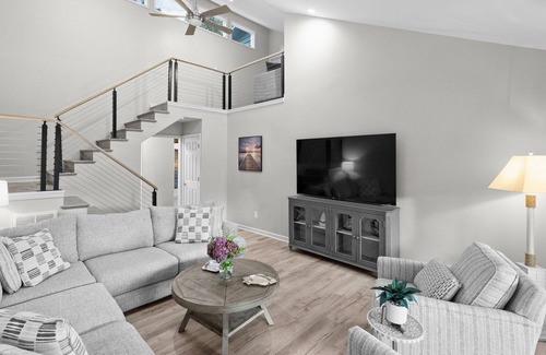 Head upstairs to find a new loft with a queen size sleeper sofa and TV. It's not only the perfect space to sit and have some quiet time, but it also provides another space for a guest to comfortably sleep.