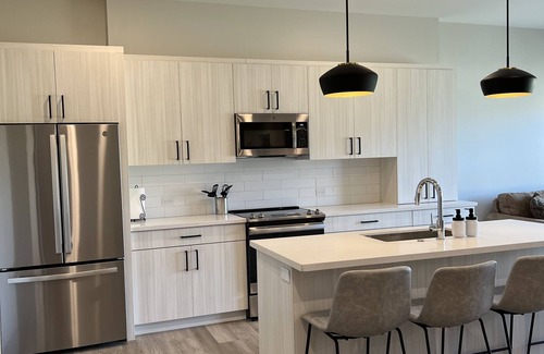 Enjoy a stay with family or friends at a brand new luxury, 2-Bedroom condo in Manhattan, KS in the Colbert Hills community. Close to local restaurants and walkable to Colbert Hills clubhouse, this condo comes complete with all the amenities you will need whether you are with friends, family, or looking for a quiet place to work. Relax on the spacious deck with outdoor furniture and enjoy a sunset over the Flint Hills with a golf course view.