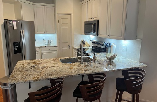 Beautifully appointed 3 bedroom condo in an unbelievably convenient location has it all! ( even 2 king beds). Well stocked kitchen with everything you need for cooking at home.Or enjoy the plethora of dining experiences nearby! Anything you need within a five minute drive, no traffic. Close to parks, shopping, many restaurants. Nearby groceries include Harris Teeter ( across the street), Trader Joe’s, Butchers Market, Loews, Wegman’s, Publix and Whole Foods. A Raleigh Gem! Many Medical services nearby.