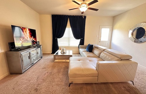 Stay comfortably in Humble at this 5-bedroom house. With 2 king beds and 4 queen beds, this fantastic property offers a serene escape for guests. Enjoy amenities like heating, AC, WiFi, and a laundry room during your stay. Relax in the enchanting atmosphere of this home with 3 bathrooms for added convenience. Enjoy all that Humble has to offer when you stay at our place.