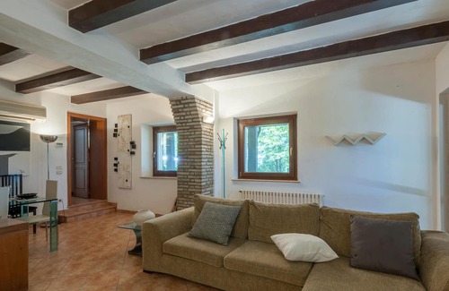 The spacious and at the same time cozy vacation home in original Italian style, with exposed wooden beams and generally a lot of wood, offers you many cozy corners for reading, several covered terraces, a large overgrown garden with many shady places and a fantastic view over the surrounding villages and mountains.