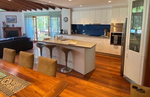 Light filled comfortable family home in unique private bush land setting with beautiful pool and hot spa backing on to a large outdoor play area with swings for kids; close to Northern Beaches Hospital, 5 minutes to the Mall and 10 minutes to the beach. Added features: large screen tv with games console, 2 separate living areas, table tennis, foosball, parents retreat, outdoor entertaining area, barbecue and fishpond. We are pet friendly with a doggie door and enclosed yard.